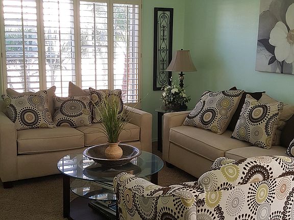 Gorgeous home in the The Provinces. This is an entertainers DREAM. Built in wine racks, big screen tv, plant shelves, plantation shutters, custom doors, window seats, pot rack, new flat top stove, B/I microwave. Custom paint th/out the house is very warm and adds to the ambiance. Two bedrooms have built in shelves and french doors. Plus a den/home office to get all your work done. The back yard is very private with a ramada-like patio and satillo tile.Large play pool with removable fencing, Mature landscaping with watering system (front/back) make this the perfect space to relax. Exterior was just painted. Neighborhood Description Great neighborhood, parks, playgrounds and walking trials. Close to shopping and freeways.