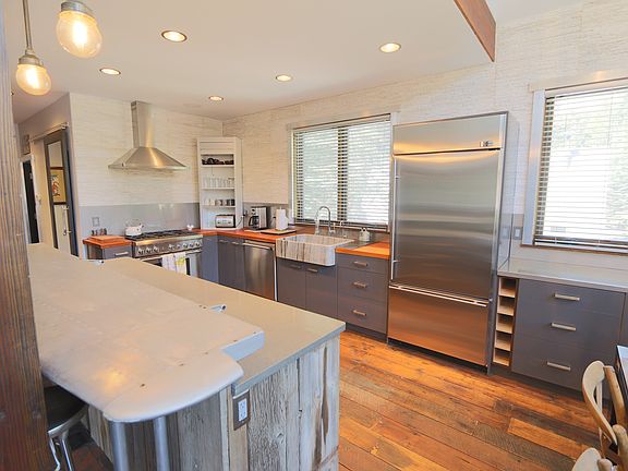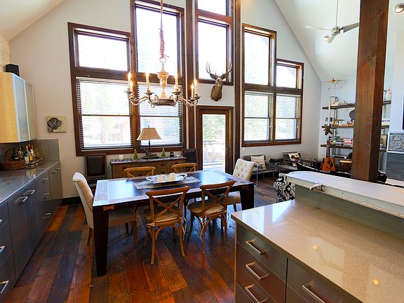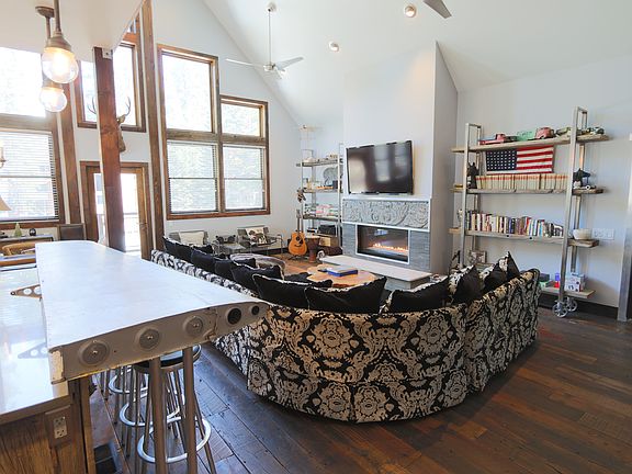 This is a "must see' outrageous custom home, the floorplan includes 4 bedrooms + loft / 4 baths, home is unique mix of modern mid-century mountain design with strong industrial and metal touches mixed with antique and artisan flair. This is a newly built modern Mammoth home with wood encasement windows with metal clad exteriors, forced air gas heating, 3 gas fireplaces, dual water heaters, custom lighting throughout, oversized 847 square foot garage and private back yard with self contained spa. The finish work includes reclaimed barn wood floors, metal railings inside and out, custom and antique doors, modern tiled showers, antique airplane wing bar top, and on and on. Custom and unique features everywhere. The master suite includes a fireplace and sitting area and private deck with access to backyard spa. The adjoining master bath includes a large spa tub and steam shower. Two bedrooms and baths on main living level. Main entry area offers airlock convenience but access to main living area of home, access to the backyard, and access to separate bedroom and bath "caretakers quarters." Located between the Village and Canyon Lodge. Easy walk to Village. This is a very fun home with wonderful aesthetic, excellent utility and efficiency of space, and durability for mountain living.
