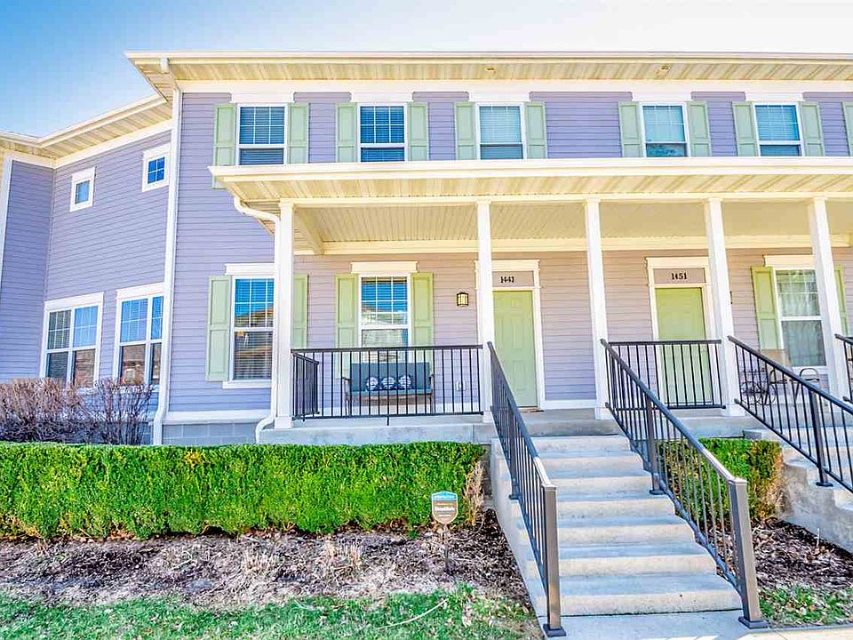 OPEN MAIN LEVEL FLOOR PLAN TOWNHOUSE with a front porch and wooded views. Two-levels finished living has 2 bdrms and 2 bths. Features laminate flooring, white counters, dark-stained cabinetry, pantry, eat-in peninsula, stainless appl., mudroom, two bedrooms on upper, master features a walk-in closet and laundry room on upper. Fenced yard. Large one-car garage. Peninsula Neighborhood. Bus route to north hospital, dental, law campus & downtown.