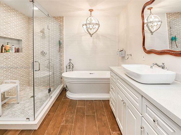Beautiful 4 bedroom, 3.5 bath pool home with 1 car garage in an incredible location! Enter into a large foyer that flows into a state of the art kitchen/living area with an oversized eat-in island, exotic granite countertops, stainless steel farmers sink, a double oven, custom Medallion cabinetry, double refrigerators, and Miele appliances with a gas stovetop. With an open concept design, this home is made for entertaining. Additional features include a formal dining room, a separate family room with French doors leading to the pool, & a large pavered patio around the pool with a fully fenced backyard and lush landscaping. The primary bath features a free standing tub with separate shower. Highlights include a 2nd ensuite bedroom and impact windows!