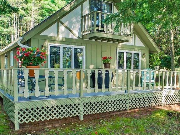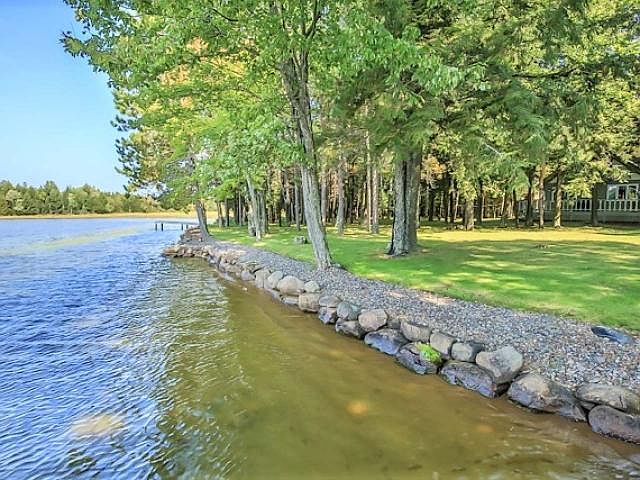 VOYAGEUR LAKE JEWEL- Sitting on the sandy level shores of the Eagle River Chain is this meticulously maintained home. It boasts a whopping 470 feet of frontage on 130-acre Voyageur Lake, part of the 28 Lake Chain. It has both wooded privacy from lake traffic and lush, emerald green lawns that provide big lake views of the water. With 3 bedrooms and 2 full bathrooms the 1,368-square foot home is neat as a pin. There is a toasty wood burning fireplace and patio doors from the dining room to the spacious lakeside deck. Rounded out with a 1-car detached garage with additional finished and heated living space, this property on Eagle River Chain is well worth taking the time to view!
