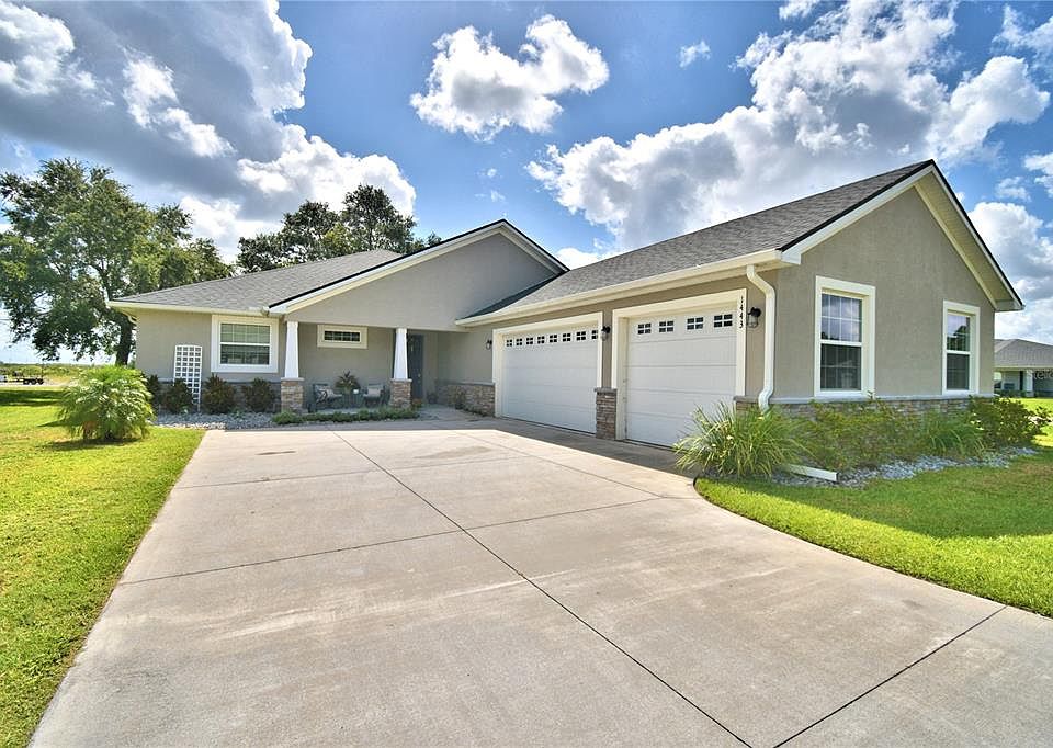 ATTENTION BUYERS! Don't miss your opportunity to own this recently built home, fully move-in ready! Many upgraded features in this 4-bedroom and 3 full bathroom home. A Lawn Sprinkler System and Rain Gutters around the home protect the integrity and beauty of the grounds. As you enter through the Keyless Front Door the high ceilings from 9' to 11' throughout the home lend to an open and spacious feeling. A smart Nest thermostat provides climate control throughout the home. The kitchen has granite countertops and stainless-steel appliances. The beautiful shaker style cabinets have soft closures. A large granite countertop island and coinciding dining room offers opportunity for casual and formal dining experiences. The front loading Washer & Dryer (GE/Whirlpool) in a separate laundry room convey with the home. The primary bedroom suite has a large walk-in closet and bathroom with a free-standing soaker tub and separate shower. From the living room, the 8' slider doors provide access to the 17' x 43' lanai. The wooded area behind the lanai provides shade and a wonderful breeze to this space. This home has a split bedroom floor plan with an additional En-Suite bedroom/bathroom for your guest's full privacy. All bedrooms have a fan. The 28' x 43' garage provides ample space for 3 cars and storage. A Tesla Charger in the garage conveys with the home. The attic above the garage has approx. 240 square feet of storage area with wood flooring to supplement your household storage needs. This home is conveniently located close to a new large grocery store, restaurants, I-4 highway and gas stations. Approx. thirty minutes to Disney and many other entertainment extravaganzas. Don't miss out on this one, it won't last long...Come see it today!