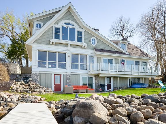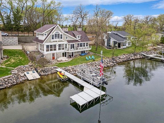 Stunning 4BD 3BA gorgeous lake home on Lake Pulaski designed by Murphy & Co. Design with beautiful architectural features! From custom details & ideal entertainment spaces to fantastic lake views & over 70’ of shoreline, this home provides exceptional enjoyment & relaxation all year long. Inviting entry foyer w/custom front door & heated slate floor leads to great room featuring floor-to-ceiling cultured river rock fireplace. Open-concept living w/beautiful lake views throughout & spacious updated kitchen! Master bedroom suite w/walk-in closet, heated floors, spa & more. Thomasville cabinets in all bathrooms & log wall treatments throughout for a classic cabin feel w/modern design! Finished 2-car garage doubles as a 3-season entertainment area. Cedar shakes & Fieldstone exterior, upper level Ironwood deck, lower level walks out to the inviting lakefront area w/stone riprap shoreline, hard sand/stone beach, & dock/lift! Convenient location close to schools, retail, recreation, & more.