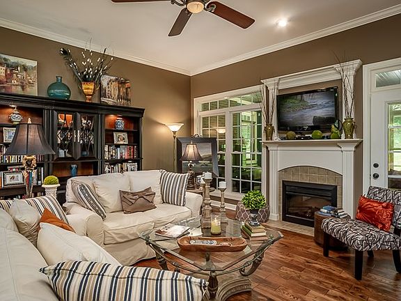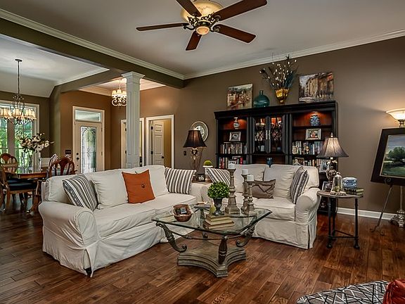 Live and entertain in this beautiful custom built spacious open floor plan, situated on a private wooded lot in highly desirable White Plains Golf Course. Enjoy gorgeous views thru floor to ceiling arched windows. Open foyer, dining area, office and large living room open into a large sunroom, making for two living spaces downstairs, plus a third in the large upstairs bonus room. Beautiful kitchen with maple cabinetry, quartz counters/backsplash opens onto living area for great entertaining flow. 10-12' and vaulted ceilings, custom trim work, new 5" hardwood floors throughout main level add to wow factor. Office can be used as den or 4th bedroom. Floored attic space adds additional storage. 3 car attached garage. A low monthly HOA includes pool, tennis courts and clubhouse bar and grill. This custom built home is a must see!