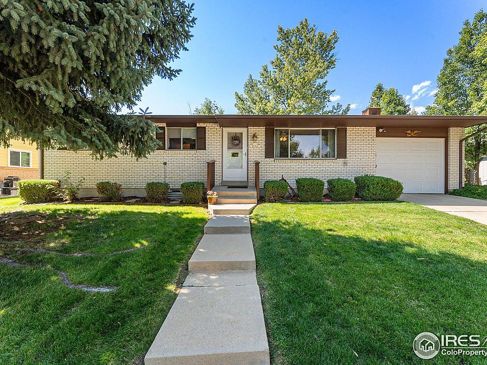 What a gem in central Longmont! This charming brick ranch offers convenient main-level living and an immaculate backyard oasis. As you enter, you're welcomed into a cozy living room featuring a large picture window overlooking the well kept front yard. Continue on to the cute eat-in kitchen featuring plenty of cabinet space. The main level includes three spacious bedrooms and a full bathroom. Don't be fooled by the blue carpet-there are beautiful hardwood floors underneath waiting to be revealed! The basement is partially finished, offering additional living space with a 3/4 bathroom and a non-conforming bedroom, perfect for guests or a home office. The oversized garage provides extra storage space. Step outside and enjoy the serene backyard, complete with a patio and lush greenery, perfect for relaxation and year-round enjoyment. The roof is only a few years old, water heater installed in 2020. Located in a wonderful neighborhood with no HOA, this home is just minutes from shopping, parks, and all the conveniences of living in central Longmont. Priced appropriately for you to add your updates and take advantage of this rock solid home.