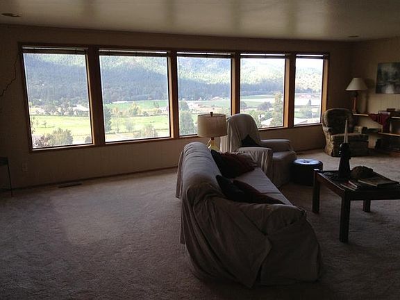 Amazing views from this ideally situated home. Over 2100 sq. ft. on the main level with 3 bedrooms and 2 baths. Oversized living room with serene mountain and valley views. A warm and cozy sun room off dining and kitchen. Upstairs there is a 320 sq. ft. bonus room ideal for office or artist space. Just across from the bonus room you can access the rooftop patio with more amazing views of the surrounding mountains and farm land. This home also features a 2100 sq. ft. basement. One side is a two car garage and the other side has divided, usable rooms. Great shop space! Currently there are 3 separate fenced areas for animals to the front of the property . There is a small grassy side yard and garden area just off the sun room. Great location, incredible views and lots of square footage make this property an Applegate Dream!