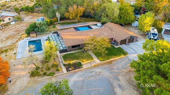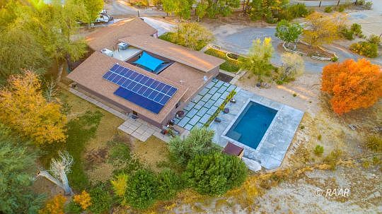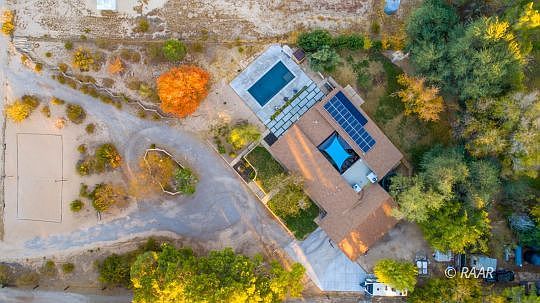 Large pool home on acreage conveniently located close to town with many beautiful features. This 4 bedroom, 2 bathroom home has been remodeled with a modern and elegant touch. Huge custom front doors imported from Sweden welcome you into this inviting space. Paid solar with 32 panels, private well, fully fenced 1.25-acre lot. Recently remodeled bathrooms with no expense overlooked. The master bathroom is one of a kind with an oversized custom shower and his and hers custom vanities. The saltwater pool includes a Baja ledge with three different areas for your umbrella and is only 2 years old. The view is one of kind overlooking the city. Circular floorplan with split living areas and a very special atrium in the middle of it all. Huge oversized garage with enclosed workshop totaling 1145sqft. Paved RV Parking and inside laundry. Private volleyball court. The mature trees give this property a park like setting and it's truly acreage living at its absolute finest.