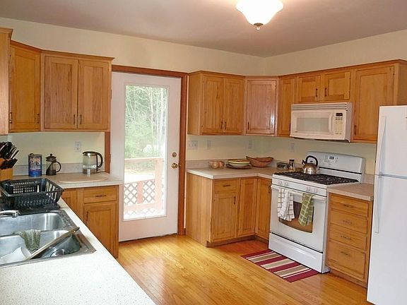 Surrounded by nature within Northampton city limits! Spacious three story home on 3.8 acres which includes part of the North Branch of the Manhan River. This home started out as a small cottage and was totally rebuilt in 1998. The open kitchen/dining room with a fireplace and living room have hardwood floors. Large 16' x 30' family room features a gas parlor stove; living room has built-ins and picture window, and there's a full bath and bedroom on the 1st floor. Master bedroom on the 2nd floor has its own bath and 2 large closets, and 2 additional bedrooms and a full bath. Finished rooms on the third floor could be studio or office space or additional bedrooms. Detached 2 car garage, chicken coop. The large flat back yard leads to a trail to the river and access to a swimming hole, as well as a frog pond, offering lots of outdoor diversions.