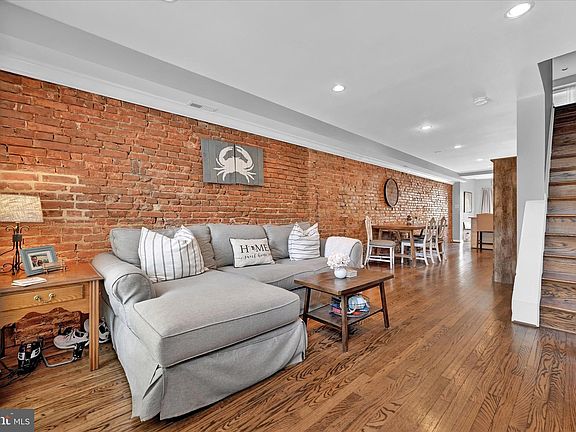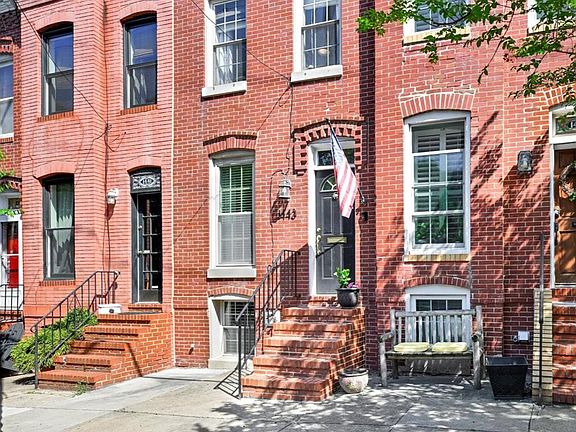 Great design never goes out of style. This sophisticated row home, in a prime Locust Point location, will not disappoint! Thoughtfully renovated and modernized with an eye for quality, it still preserves those beloved, classic Baltimore row home elements. The open concept main level offers seamless flow between the living room, dining room, kitchen, and half bath, and is tied together with beautiful hardwood flooring and exposed brick. The bright, light-filled kitchen offers an elevated feeling of space with its vaulted ceiling and custom 42-inch white cabinetry, and features all of your design must-haves: exposed wood shelving, subway tile backsplash, granite counters, a breakfast bar with seating, center island with shiplap accents, a porcelain farmhouse sink, plus recent stainless-steel appliances. The upper level was totally reconfigured in 2017 to create a terrific primary suite with bedroom, private bath, and walk-in closet/dressing room. Both bedrooms feature ceiling fans, newly installed hardwood floors, and ample closet space. The stylish bathrooms boast custom white vanities and feature stunning marble, porcelain, and tile accents. The incredible outdoor living spaces include a rooftop deck with panoramic views and a private lower rear deck. Watch the fireworks light up the Inner Harbor! Enjoy dining alfresco on the spacious rear deck, with its full privacy fencing. There’s a bonus flex space in the lower level and tons of storage. Completely renovated over the last six years with many mechanical updates: replacement windows, recently re-sealed roof (2021), brand new water heater (2023), and newer appliances (all 2017). Superior Locust Point location, one block from McHenry Row with easy access to all Baltimore work centers and I-95. A one-way street with ample parking. Walking distance from nearby sports fields, playgrounds, dog parks, pubs, restaurants, and gyms. One of the best and most accessible areas of Baltimore City!