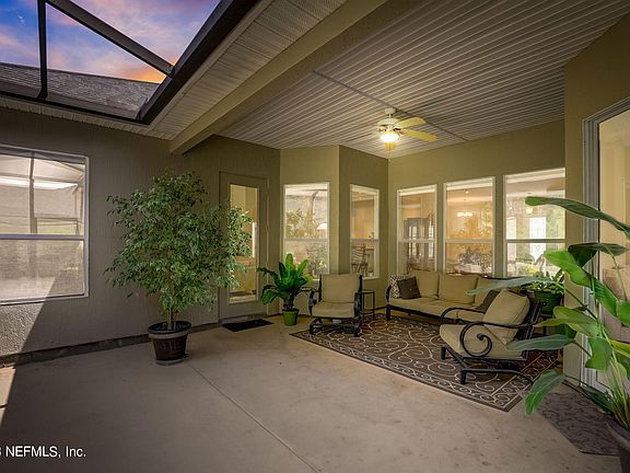 Welcome home! This beautiful Bartram Springs home is ready for new owners and new memories! Get ready to kick back, because this home features a private oasis you won't find anywhere else. A jumbo screened lanai leads you to the magnificent custom water feature that you MUST SEE, with sprawling garden and walking path that will have you saying WOW. Inside you will find four spacious bedrooms with master suite featuring trey ceilings and patio access, three full bathrooms, and a private office with additional flex space for dining, secondary sitting room or living room. This home has it all! Space for everyone! You will love the premiere location, a very short walk from the lake, community center and pool! Bartram Springs is home to some of the finest schools, dining and shopping around.