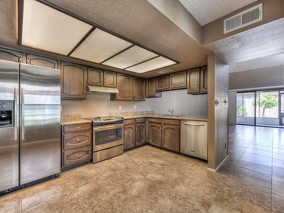 LOCATION,LOCATION! This popular neighborhood located conveniently close to freeways& entertainment, accompanies a charming& comfortable townhome, as well as, 2 community pools w/in short walking distance. The bright,open floor plan encompasses a large kitchen with all sparkling stainless steel appliances, polished granite countertops& a roomy eat-in kitchen perfect for any occasion. Natural AZ sunlight permeates thruout the 2 spacious bedrooms, kitchen& great room. The master bedroom has exclusive access through double French doors to a patio enclosed with screens& an additional open space for fresh air. The master bath has sleek granite countertops, a drop in sink,& brand new polished nickel faucets creating a luxurious spa feel. No need to think twice about this prime Scottsdale location
