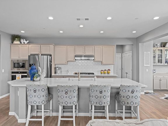 Welcome to the beautiful neighborhood of Highgate Regents located in the gated active adult community of Seven Oaks. This 2,513 sq ft home features an open floorplan with additional den and office as well as a second bedroom en suite. Gorgeous chef style kitchen with stainless appliances and quartz countertops. The spacious primary suite offers dual vanity and large walk in closet. Custom landscaped backyard with large pergola patios for extended shade. True pride of ownership! Schedule your private showing today.