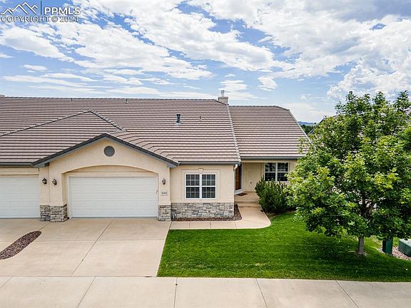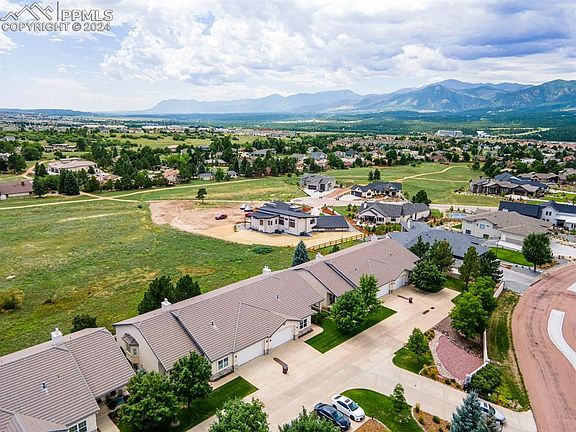 Welcome to your new home—this bright and open rancher is tucked away in the desirable gated community of Eagle Villa Grove. With open space behind you, enjoy uninterrupted views of Pikes Peak, the Air Force Academy, and the Front Range. As you step inside, your greeted with a spacious open concept floor plan with tall vaulted ceilings The covered porch entry leads you into the great room, where a wall of windows captures the stunning mountain views, flooding the space with natural light. Inside, the formal dining space offers flexibility and easy access to the kitchen. The main-level master suite is a true retreat, with vaulted ceilings, a and a soaking soaking tub with tile floor and a double vanity. This home offers the best of both worlds—surrounded by the natural beauty of Colorado, yet close to all the conveniences like shopping, entertainment, D-20 schools, and easy access to major roads.