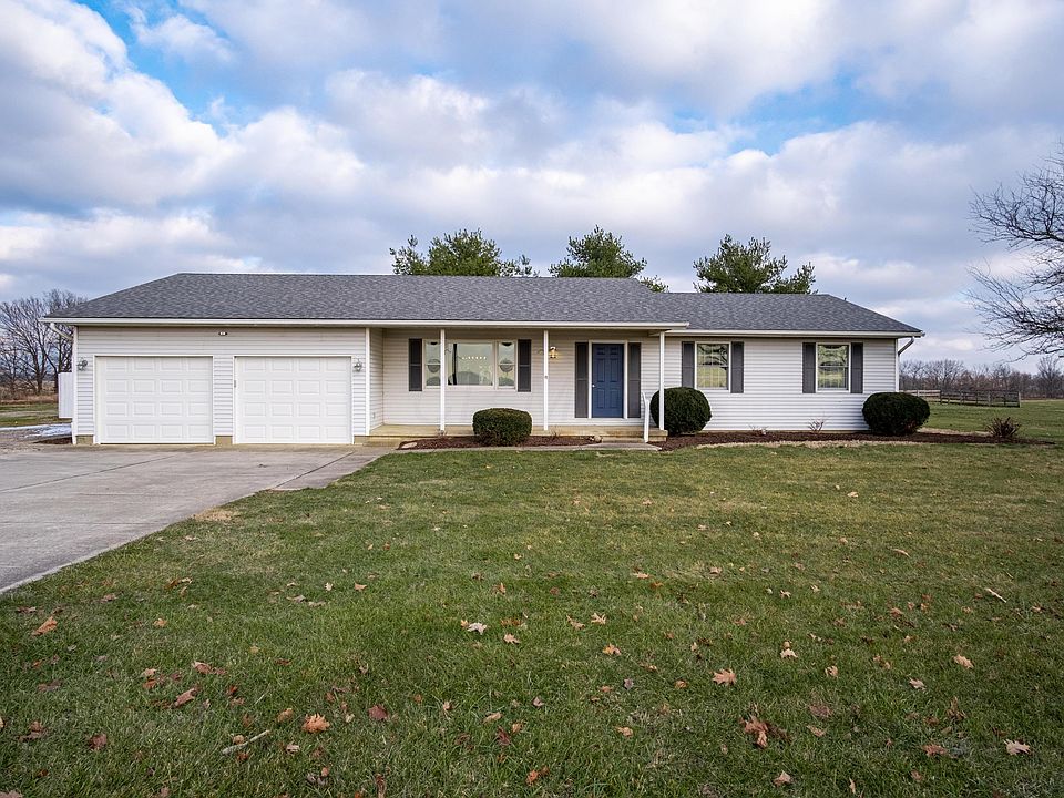 WOW!! Totally Remodeled Ranch Style home with acreage. This home offers updated kitchen with plenty of Counterspace and Cabinets, Quartz Counter tops, Stainless Steel Appliances, New Floor throughout, Large Open Family Room with Vaulted Ceilings, Updated Bathrooms, Full Front Porch, 4 Season Room, Deck, 1 Barn and 1 24x33heated shop and so much more!!! 2.5 acres and perfect for anyone wanting the country with land!! Perfect for a mini farm or horses.