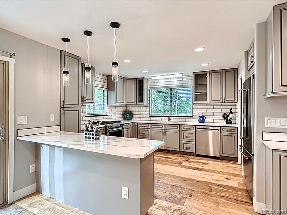 Discover your dream home in this completely remodeled townhome! Every room in the house is updated and new. Wide plank wood floors, updated electrical, plumbing, lighting and more. Large eat-in kitchen with new cabinets, stainless steel appliances, granite counters and walk-in pantry. Step outside to the deck and be captivated by views of the golf course, lake, and Table Mountain. Cozy up in the living room with a gas fireplace, creating a warm ambiance. The open floorplan effortlessly connects living spaces, making it perfect for gatherings. Upstairs, two primary bedrooms with vaulted ceilings provide a tranquil retreat with ensuite bathrooms, and walk-in closets for added convenience. One of the upper bedrooms features a deck with fantastic views. 3rd bedroom in the basement is remodeled with full bath, walk-in closet and egress window. Finished 2-car detached garage. 2 furnaces and a/c units. Washer dryer hook ups in basement and 2nd floor. Close to downtown Golden and the new Lutheran Hospital. Easy commute to downtown or trips to the mountains. Come by and take a look. You will fall in love.
