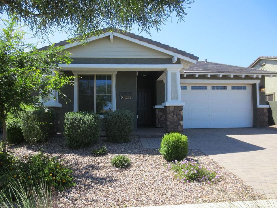 Upgraded 3 bedroom + den Marley Park home built in 2017!! Tons of upgrades inside with modern tile flooring, fans and blinds throughout, custom paint and open great room which leads to kitchen with island, white cabinets, tile back-splash and stainless steel appliances. Master Suite includes a private bathroom with double sinks, walk-in closet and beautiful tile shower. Spacious backyard with covered patio and turf grass. Fantastic location right across the street from grassy park with playground. 2 SMALL PETS WILL BE CONSIDERED. $50 application fee for each adult. Deposit is equal to one months rent plus a one time $199 administrative fee. Tenant pays all utilities. 5% rental tax/admin fee on top of base monthly rent.