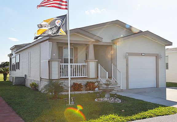Spacious Late-Model 2 Bed 2 Bath Palm Harbor in Premium Gated Community Upgrades abound in this 2005 Palm Harbor home located in East Orlando's Fairways Country Club. Its open floor plan has 1800 sq ft of living space and features a large living room with hardwood floors, fixed glass windows and crown moldings, adjacent dining room, fabulous kitchen with upgraded cabinets, pantry, tile backsplash and stainless appliances, big master bedroom and bath with dual sinks and extra storage, guest bedroom, 2nd full bath, cozy office, inside laundry and single-car garage. Four Star Homes, Inc. is a full service Real Estate Company, licensed not only with the Board of Realtors,but also licensed under the Florida State Department of Highway Safety and Motor Vehicles. Not only do we sell Real Estate, but we also sell Manufactured and Mobile homes in communities. Some of these communities require a monthly fee for lot rent and/or use of the community amenities, as well as basic inclusions, including, but not limited to; Water, Sewer, trash Pick-up, Basic Cable, Lawn Mowing. Fees, and what is included will vary so please contact Four Star Homes, Inc. for the current lot rent information.