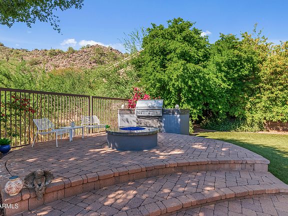 This fully renovated single level home sits in the private gated community of Hidden Hill, surrounded by the foothills of North Scottsdale's McDowell Mountains. The moment you drive up the hill into the neighborhood, you feel tucked away in nature with a level of quiet and privacy that is hard to find. The property backs to more than 30,000 acres of untouched Sonoran Preserve, giving you miles of hiking and biking trails and complete privacy with no homes behind. The backyard feels like a true retreat with a heated pool, waterfall feature, fire pit, built-in Lynx grill, and endless desert sunsets. Inside, the open floor plan and twelve foot ceilings bring in beautiful natural light and showcase the views, while $300,000 in upgrades add comfort and thoughtful... detail throughout. The remodeled kitchen offers deep Euro style cabinetry, marble counters, and stainless appliances. The private owner's suite, ALL ensuite guest rooms, and a converted art studio provide flexible space for any lifestyle. All of this sits just minutes from top schools, shopping, and everyday conveniences, giving you the perfect balance of seclusion and accessibility.