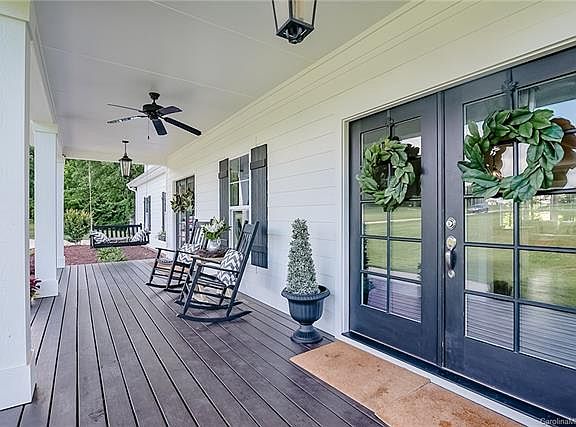 Welcome Home! This long entry driveway opens up to this immaculate home that sits on 6 acres of gorgeous, lush land. Once you pull up, the farmhouse front porch greets you & your guests and you can view the beautiful sunsets. Walk into entry way that can be used to display art pieces. Magnificent wide plank hardwoods throughout the main living areas. The attention to detail is extraordinary in every room. The kitchen features farmhouse sink, commercial faucet, ss appls, granite counter tops, great room has recessed lighting w/ extra detail to the window casings & crown molding, master suite on main level, w/ tray ceiling & barn door leading into luxurious master bath, which features an exquisite frameless shower & dual vanities. The stunning screened-in porch has Eze Breeze system, wood ceiling & stone fireplace for relaxing w/ family & friends. This is luxury living at it's best & it's minutes away from shopping and restaurants!