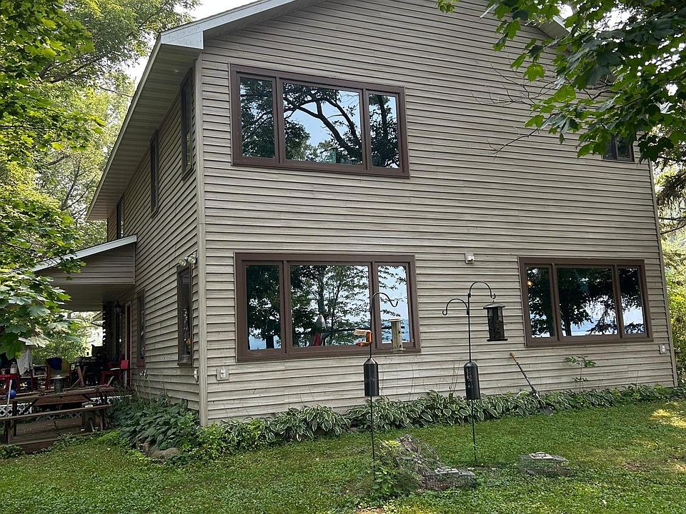 Home features a weed roller and a 106ft dock (in lake) boat lift. Thermal Heat Pump for both heat and A/C (electric), Hydrogen Peroxide-Combat Rust and Rust Bacteria for a clear lake. Highest quality Anderson Windows with no seeum screens less than 8 years old. 2 large lake side picture windows (Main) and 1 large lake side picture window (upper-Primary Bedroom) BOSCH super quiet dishwasher, custom cabinets throughout, 100% stainless steel appliances, large walk-in pantry, outside deck-cedar, and a 10x10 storage shed.