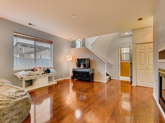 Sunny and cheerful 2-story in desirable Foxton Village! Many recent updates include new plank vinyl flooring in the bathrooms, laminate flooring in the secondary bedrooms, newer appliances, and newer carpet throughout. The spacious living room greets you with rich wood look laminate flooring and cozy gas fireplace, transitioning nicely byway of the bar seating area with popular pendant lighting into the open concept dining and kitchen space. The kitchen offers ample natural tone cabinetry for your every storage need along with newer stainless appliances. An expansive loft greets you to the upper level of the home, perfect for study or play. The large master suite is complete with private full bath. Two additional beds and secondary full bath all conveniently located upstairs offer room to grow. You will love the community park and walking paths along with being just minutes to the Rocky Mountain Arsenal National Park. Easy commute to Downtown or DIA.