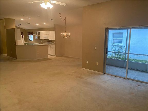 Do not miss out on your chance to get into one of Silverthorns larger maintenance-free villas! This 3 bed, 2 bath gem with over 1,700 sq ft of living space backs up to the homeowner associations park and sports courts no rear neighbors, ever! Inside, an open floor plan unfolds with a spacious living room and dining area. The bright kitchen offers laminate counters, a breakfast bar, a built-in desk, a few glass-fronted cabinets, and a sizable eating nook. The private master suite boasts a walk-in closet, and the master bath has dual sinks, a step-in shower, and grab bars in the shower and near the toilet. Through the sliding glass doors in the living room, youll find the screen-enclosed lanai with beautiful tile, where you can dine al fresco or just savor the gorgeous Florida weather. Overlooking the shaded back yard, the lanai also offers a view of the aforementioned park, so you can also enjoy some people watching without ever leaving home. This lovely villa is mere moments away from many of Silverthorns stellar amenities, like the park & sports courts, community center, fitness center, and the Jr Olympic-sized community pool. Theres also a clubhouse, a full-sized restaurant and bar, award-winning golf course, and much more. Included in the HOA fees are grounds maintenance, irrigation repair and maintenance, cable TV and internet, and painting. Its also close to the Suncoast Pkwy for access to Tampa. Jump on this opportunity now before its gone!