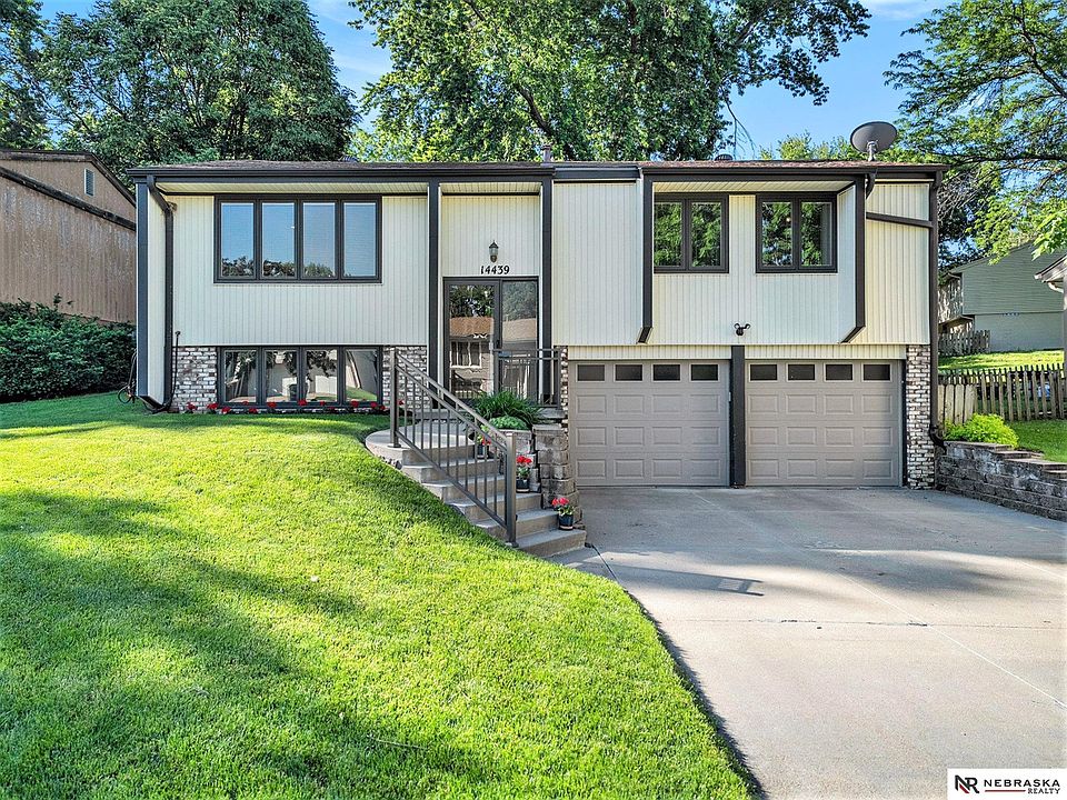 OPEN HOUSE THURSDAY 5-7. Quality, quality, quality throughout this meticulously maintained & updated Millard home that backs to a walking trail, is in close proximity to shopping & schools, and offers easy interstate access. The heart of the home, the custom kitchen, is a chef's dream. It boasts quartz countertops, ample storage, and a unique combination stove with an electric oven and gas stovetop. The Pella windows with integrated blinds mean you'll never have to worry about window coverings or dusting blinds again. Enjoy outdoor living on the large composite deck, an ideal spot for entertaining or simply relaxing with your morning coffee. Additional updates include a newer (2021) AC and furnace and beautiful main-floor baths. And don't miss the 2-story shed with tons of storage in the fenced back yard or the cozy gas fireplace & other updates downstairs! This home is a true gem; don't miss this opportunity to own a home that combines many updates in a prime location.