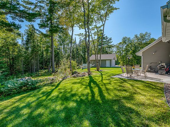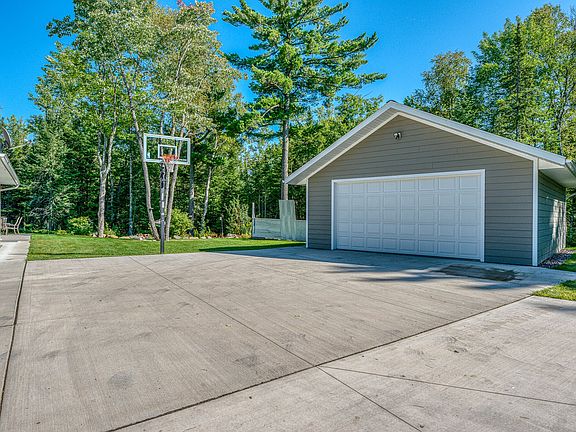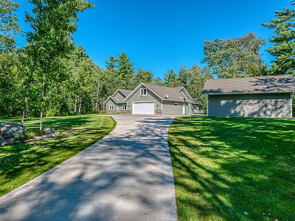 Custom built home with an open floor plan, huge vaulted master bedroom including: master bath, tile shower, jetted tub, his and hers sinks, walk in closet, and even a sauna. The other two bedrooms are large and include full baths in each and walk in closets. Oversized kitchen with custom cabinets and quartz countertops. Utilities are low with energy efficient in slab heat and spray foam insulated throughout. Enjoy the 2+ stall, heated, attached garage and 2 stall detached garage. Plenty of space in the vaulted living room, open dining room, den, and huge bonus room that could be a 4th bedroom. All on 2 acre wooded lot in the middle of town close to schools. Hard to find setting in the heart of town. Realtor friendly.