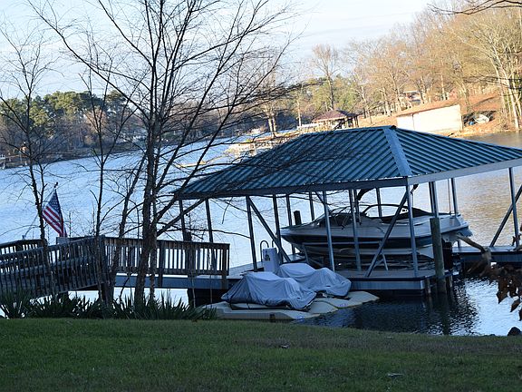 Beautiful waterfront home located on large cove off main channel, 3BR/2.5BA, HW flrs, scr porch, Kitchen w/eating bar, solid surface counters, smooth top range, FDR, large Foyer, separate office w/cabinets, gas FP in GR w/built-ins, open floor plan, views of lake from almost every window, huge 2-car garage, dock w/deck and boat slip + deck, patio, huge front porch, partial basement provides storage and workshop! Buyer/Agent must verify all pertinent info nec in decision making process; i.e., SF, age,