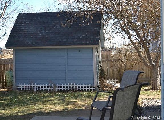 Beautiful Home! Private, spacious backyard that backs to an open area w/matching shed, complete with a Pear & Apple Tree! Stunning, large updated kitchen with Granite Counters and walkout to backyard! Open and spacious floor plan throughout the house to include a large living room on main level. The upper level includes an oversized master suite with two closets, a sitting area, attached full bath and 2 additional rooms. Lower level is perfect for a mother-in-law suite or kids retreat! This level features a rec room space, 2 bedrooms, a 3/4 bath and additional storage space. features include; vinyl windows, door trim, roof, interior paint, furnace, hot water heater, Central Air, humidifier and security system. Great Pikes Peak Views, literally around the corner from Ft. Carson, downtown and I-25 access. Welcome home!