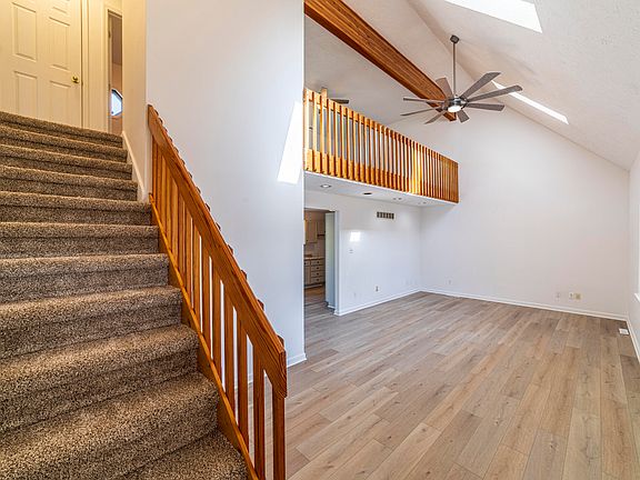 - Cathedral Ceiling(s), Eat-in Kitchen, Storage, Recessed Lighting, Natural Woodwork, Laminate Counters, High Ceilings, Ceiling Fan(s)