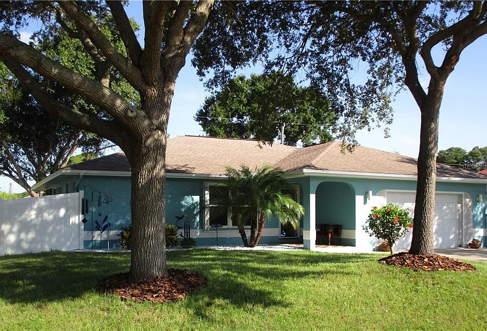 You can hear the waves on the beach from this beautiful, newly-updated, South Venice home. Open-concept, light and bright, with vaulted cathedral ceilings. Tile & hardwood laminate flooring throughout. Two master bedrooms with new hardwood laminate flooring. Two fully updated bathrooms. Open kitchen with granite countertops and entire suite of brand-new Whirlpool stainless steel appliances. New air conditioning system with UV Light and new duct work throughout the entire house. New Tropical ceiling fans with light kits in every room. Freshly painted interior and exterior. Newer insulated windows and sliding glass doors with hurricane shutters. One-year-old water softening system and R/O system. Large two-car garage with patio screen enclosure. Newer (still under warranty!) washer & dryer. Fenced-in yard with 6' vinyl privacy fencing. Large screened lanai with new Tropical ceiling fan. Sturdy block construction. Dimensional shake shingle roof. Park-like setting with four Grand Daddy oak trees. New landscaping and newly installed sod. ****THE ADJACENT CLEARED LOT IS ALSO AVAILABLE SEPARATELY.**** Located west of Shamrock Drive, near the South Venice Yacht Club. In walking and biking distance to the South Venice Beach Ferry, Shamrock Nature Park, and the Legacy Bike Trails. There is a kayak launch approximately 1000' feet from the house, that leads to the Inter-Coastal Waterway. The South Venice Beach Ferry shuttles residents to the Private South Venice Beach, directly on the Gulf of Mexico.