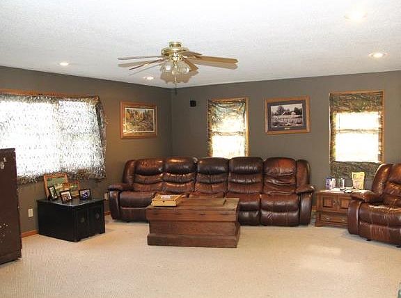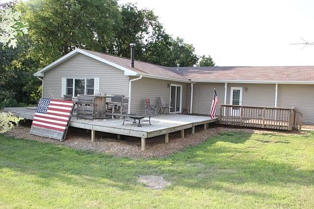Move to the country on hard surface road. Spacious home with large living room and wood burning stove. Large deck and very unique fire pt area with large rock landscaping.