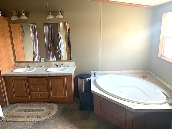 3 bedrooms, 2 baths, fireplace. Oak kitchen, formal dining. Lots of extras, a very nice stocked pond. Something for everyone. This manufactured home has a maintenance free exterior plus decks. Kitchen: Decorative cabinets, lots of counter space, laminate flooring, wood burning fireplace. Dining Room: Painted walls, large room big enough for all of the family and friends. Master Bedroom: Walk in closet, laminate flooring, freshly painted. Nice size room. Master Bath: Corner tub, free standing shower, large vanity, storage. Bedroom: Painted walls, laminate flooring, large closet. Bath: Tub and shower combo, oak vanity, tile flooring, storage. Bedroom: Large closet, laminate flooring, painted walls. Bonus Room: Dry wall, painted walls. Pond that is stocked with fish! Right out the back door. Garage 32' x 28', well insulated, 200 amp service, house has 200 amp, metal ceiling, wood burner