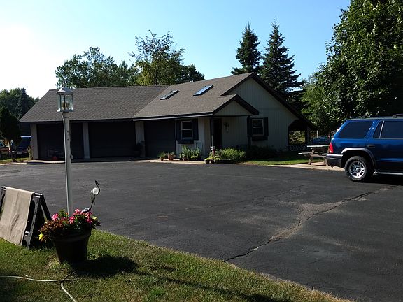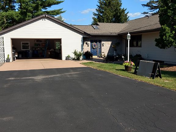 This beautiful 3 to 4 bedroom, 2 bath ranch home sits on over 4 acres in the Town of Rudolph. With over 2600 finished square feet of living space, this is the perfect home to raise your family in. Main floor features a beautiful kitchen with dinette area featuring a gas fireplace, formal dining room, spacious living room with wood burning fireplace, family room, master bedroom suite with walk in closet and large master bath, 2 additional bedrooms and second full bath. Walk out lower level features a large L shaped rec room with wood burning fireplace, and what could be used as a 4th bedroom (in need of a closet) or office, laundry area, plus plenty of extra storage space. 2 stall attached garage with large breezeway/mud room into house and an additional detached 3 stall garage with a heated stall/work shop and separate large outer storage shed. Large deck and patio, acres of landscaped yard with ponds and sandy beach area provide you with your own private park, perfect for entertaining, family gatherings, special events or just for the family to simply enjoy.