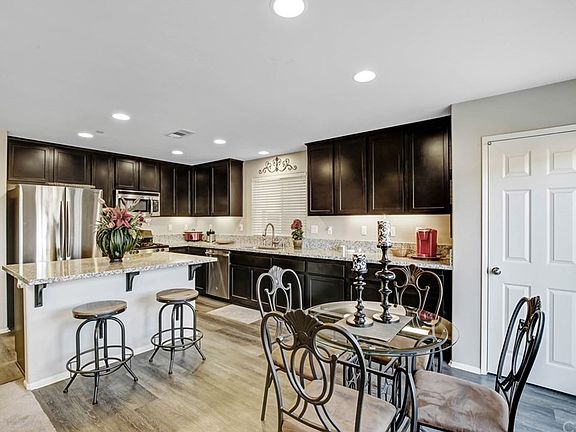 Welcome Home to the ESTRELLA Community of Beaumont! Centrally located and GATED, this detached condo is walking distance to Oak Valley Towne Center, minutes from Schools and the 10 & 60 Freeway! Tastefully appointed, Great room, very open floor plan, You will have all the room you need with this spacious 4 bedroom, 3 Bath home. There is a bedroom and bath downstairs, which is a great for in-laws, roommate, or office. The backyard has been professionally landscaped with trees, lights, and an easy to maintain sprinkler system. This home is READY for MOVE IN and ALL APPLICANCES ARE INCLUDED! Come and see this great home today!