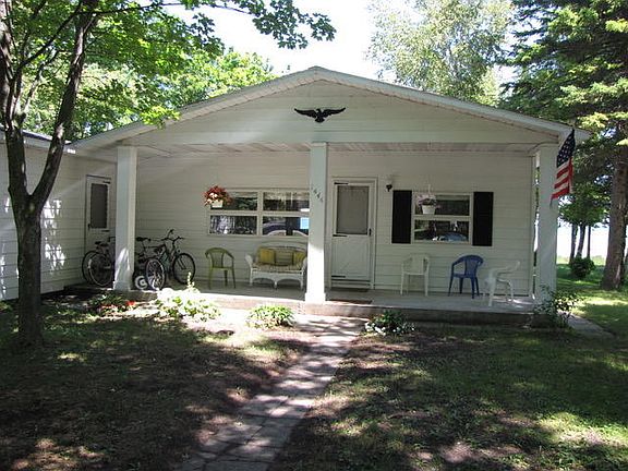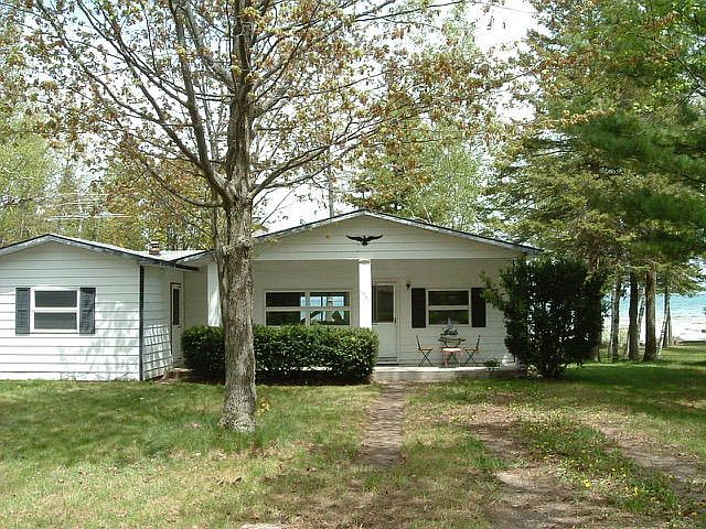 Sandiest shoreline!Beautiful beach & view of Great Lakes shipping channel.Amazing Sunrise.Quaint Beaugrand Estates,conveniently located 4 miles to downtown Cheboygan, 5 minutes away. The bicycle trail is across the highway. This comfortable cottage is for year around living with garage. Fireplace. Two bedrooms plus the third sleeping area known as the bunkhouse, port hole windows has a Straits View. 2 Baths. The one bedroom would make a great office with direct access to the porch.Relaxation at its best. A portion of this home has frame additions with an upgrade mobile home located central. Bathroom has Kohler fixtures.This unique opportunity to own sandy beach waterfront w/dwelling for only $124800 in the Beaugrand Estates.Should have bought it when I saw it,is not what you want to regret