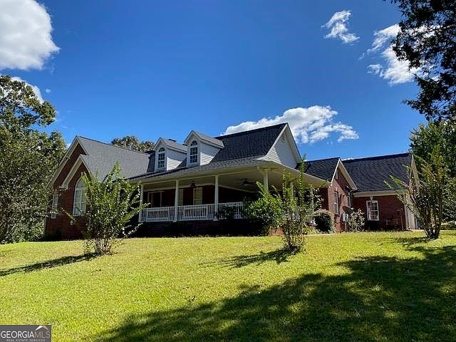A Homesteader's Dream Come True!!! Custom-Built, 6 Bedroom/4 Bath Brick Ranch on 14.95 Acres . . . complete with Orchard, Fenced Garden and Barn! Imagine picking the Abundant Bounty from your Prolific Fig, Apple, Pear and Pecan Trees, Blueberry Bushes and Muscadine Vines! Enjoy the birds' symphony from your Gigantic Covered Front Porch, the perfect spot for your morning coffee and family gatherings! Wide-Open Floor plan with spectacular Koa wood countertop separating the kitchen from the fireside GreatRoom! Gorgeous Hardwood Floors with Koa wood inlay! Two sets of French Doors in the GreatRoom open out to an Enormous Back Deck overlooking the Garden and Orchard! Elegant separate Diningroom! Peaceful Master Retreat with vaulted ceiling; ensuite bath equipped with double vanity and an enormous dual-head shower! Unique, custom stained-glass windows throughout! Large office off the kitchen! In-law suite upstairs with Full Bath, complete with beautiful claw-foot tub! Full Finished Basement with 2 Bedrooms, a full bath, fabulous Fireplace and Upgraded Kitchen! It's like having TWO HOMES IN ONE!!! Oversized two-car garage with heating and air . . . perfect spot for a workshop!!! Mudroom/ LaundryRm with sink and cabinets! STORAGE GALORE, along with flooring in the attic! The home is serviced by county water, but the property has a 300-ft deep bored well for irrigation / watering the garden, orchard and yard. There is a creek on the property . . . with a potential lake site!!! All accessible 36-inch Doors! So many incredible features . . . the Possibilities for this well-loved property are ENDLESS!!!