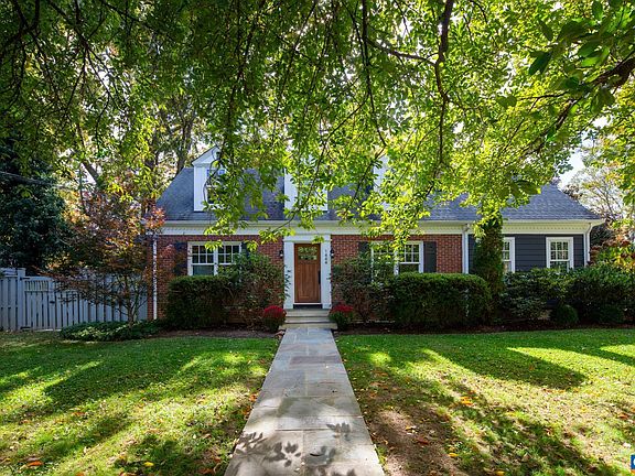 Beautifully renovated mid-century cape cod in the coveted Rugby Hills neighborhood! Every space in this home has been thoughtfully renovated, creating a light & bright open floor plan that mixes 50's charm with a clean, modern aesthetic. Stunning kitchen with soapstone countertops, marble backsplash, gas range with copper range hood. Lovely dining space is surrounded by windows overlooking the level, landscaped, fully-fenced backyard. Multiple outdoor stone terraces provide ample opportunity for entertaining, and the custom-built playhouse is a child's dream! Back inside, the wood-burning fireplace is the focal point of a cozy-yet-open living space. Also on the main level are two bedrooms, a renovated full bathroom, and flexible office/play room/add'l bedroom. Upstairs you'll find a spacious owner's suite with new (2021) full bathroom complete with marble floor & shower surround, custom walnut double-sink vanity with quartz top, and shiplap walls. The 4th bedroom and 3rd full bathroom (marble floor, tile surround, wood accents) are also upstairs, along with a cozy den space wrapped in shiplap. Finally, the basement offers flexible space for play, exercise, and hobbies, along with ample storage and a large laundry room.