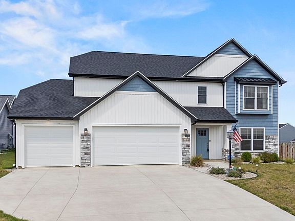 On a cul-de-sac sits this beautiful home. The den is right inside the front door. The hallway leads to the open concept living rm, dining rm & kitchen. With lots of light coming in, this living rm with gas fireplace makes this rm the best gathering place. The dining rm leads into the well lit kitchen with beautiful countertops, modern cabinets, stainless steel appliances & white subway tile, making this an elegant show space. The walk in pantry just off the kitchen & the mudroom. A half bath & entrances to the garage & back door are all conveniently located in this area as well with drop zone & charging station for all your devices. The 3 car garage is equipped with an electric vehicle charger, a refrigerator, & plenty of space for storage. Upstairs, you will find 4 bedrms & laundry. The laundry rm conveniently separates the 3 bedrms from the main bedroom. The very large walk-in closet is attached to the laundry rm & primary en suite. The patio is a private retreat. Enjoy dinner with the built in pizza oven or grill under the gazebo overlooking the spacious backyard.