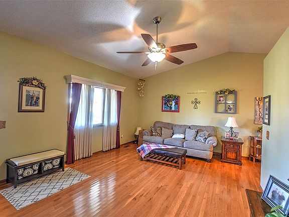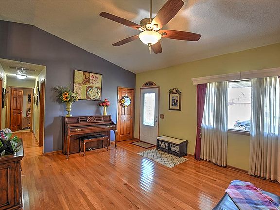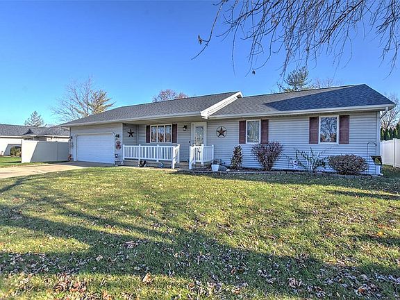 Sprawling Mt. Zion Ranch. Cathedral ceiling in main floor living area. Kitchen with Granite counter tops and 18' ceramic tile floors is open to dining or family room area with wood burning fireplace flanked by bookcases. 3/4 inch wood floors. Roomy on-suite with walk in closet. Addition in 2009 provides separation of space. Basement under addition has custom pine ceilings plus an egress window. Perfect area for movie or game night. Roof and gutters new in 2024!
