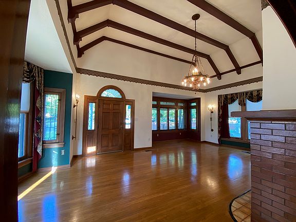 Charming turn of the century Victorian home in historic neighborhood. Character abounds in this home with breathtaking features, 20 ft vaulted beamed ceilings, leaded glass box windows, opposing curved glass windows, floor to ceiling fireplace, and amazing original hardwood floors. Large dining room with French doors, crown molding and wall sconces will accommodate all your entertaining needs. Provides 3 bedrooms and 2 1/2 baths with leaded glass doors and built in cabinets, 3rd bedroom leads to outside deck. The lower area offers an oversized living area with FP, full bath with walk in shower, and laundry room. Updates include newer electric, updated plumbing and new water line, updated bathroom and new paint and carpet throughout. Two car detached garage completes the home. Come make this your forever home!