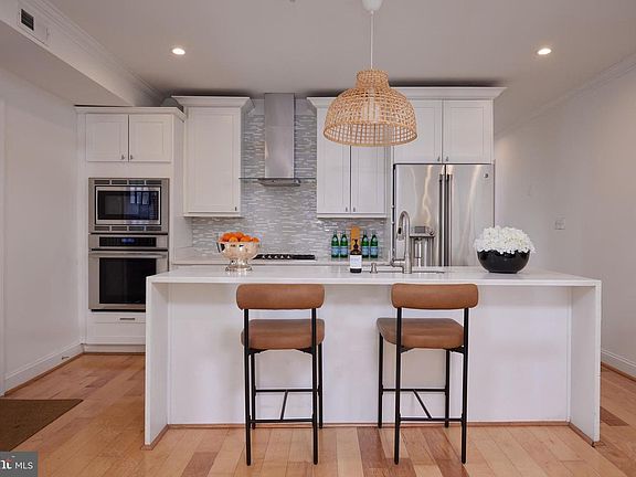 Spacious, contemporary 2 bedroom, 2.5 bath condo with over 1,200 square feet of living space and off-street parking in a serene, wooded location central to all of the city's amenities. The home was entirely redone in 2019 and features recessed lighting and crown molding throughout and an open living space with built-in speakers, deep sill windows, and enclosed patio with French doors. Gourmet kitchen highlighted stainless steel appliances, soft close cabinets, and white quartz waterfall island. Central hallway houses neatly placed powder room, washer/dryer, and storage. The ample secondary bedroom includes a closet and an en-suite bathroom with jacuzzi tub. The oversized primary suite boasts a walk-in closet and spa-like bathroom complete with soaking tub, glass-enclosed multi-head shower system, and double vanity. The whole home radiates warmth and comfort and is punctuated with thoughtful elements. Wake up every day with Rock Creek Park and 14th Street at your doorstep. Available for a 12-month lease starting April 1st. Flexible move-in date can be negotiated. Renter is responsible for gas and electric. Water is included. First month's rent and security deposit are required at lease signing. No smoking allowed.