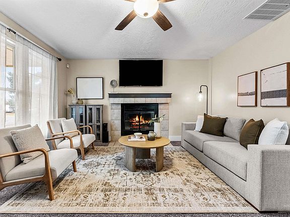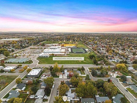 Cozy single level home situated on a prime corner lot with 50' of RV parking plus walking distance to Meridian High School! Beautiful interior that is highlighted by a cozy fireplace, an abundance of natural light and plenty of space to entertain guests. Flexible floor plan- nearly 1,600 sf, 4 spacious bedrooms (1 could be used as an office) plus 2 full bathrooms. Large kitchen includes plenty of cabinet/counter space, granite countertops, tile floors/backsplash, recessed lighting and pantry. 50' RV space with double gate for your toys! Excellent outdoor entertaining space- nearly a quarter acre lot, fully fenced, mature trees and patio for gatherings. No HOA dues plus low taxes! Low cost irrigation water for your automatic sprinklers. 2 car garage with additional storage space. Centrally location- walk to Meridian HS, easy access to the freeway plus minutes to restaurants, shopping, parks and more!