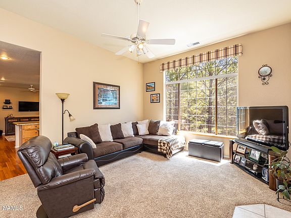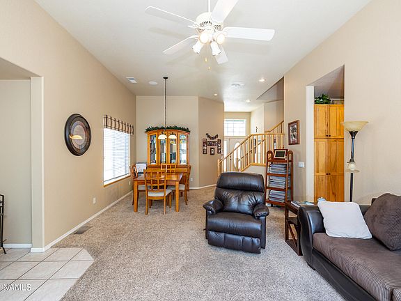 A potential bedroom serves as the perfect home office. Upstairs, the primary suite and two guest rooms await, while downstairs, a walkout family or bonus room leads to the forest. The home features a new roof and great storage beneath. Conveniently located near schools, shopping, freeways, NAU, and the airport, it's no wonder this desirable neighborhood is so popular.
