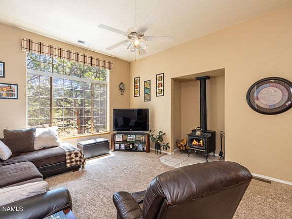 Nestled in Flagstaff's tranquil Ponderosa Trails, this custom-built home offers 3-4 bedrooms and stunning views of the open space behind. Enjoy the neighborhood's urban trail system right from your backyard. Inside, a spacious great room with a wood-burning stove and tall ceilings overlooks the greenbelt. The hardwood-floored kitchen, nook, and den make entertaining a breeze. The kitchen was fully remodeled 2 years ago.