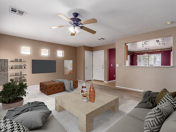 Just minutes from the 60, this 3 bedroom, 2 bath, is just what you need. Pull into the large 2 car garage and then enter into the spacious kitchen. It boasts ample counter space and plenty of room for dining. The open floor plan seamlessly connects the kitchen and dining room to the living room flooded with natural light. There are three comfortably sized bedrooms. The master is large with an attached bathroom. The laundry room and second bathroom is a convenient location for all bedrooms. Easy to care for desert landscaping with mature plants in the front yard. The back yard is also desert landscaped and fully fenced and private and ready for entertaining.. The tile roof adds an upscale curb appeal.