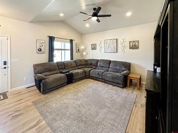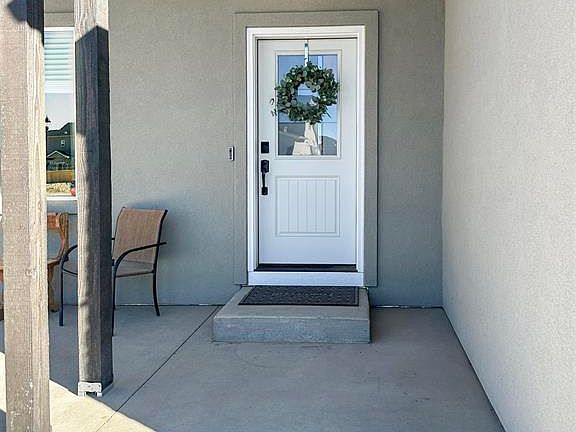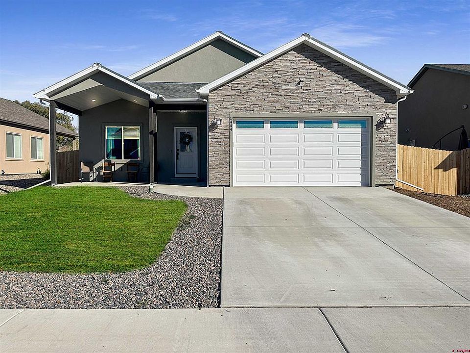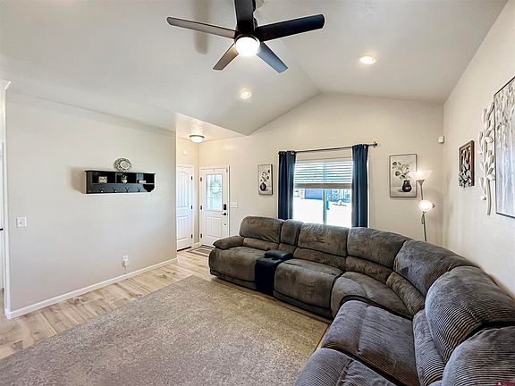 Remarkable Ridgeline built home in the desireable and popular Bear Creek Subdivision. 2022 rare Acadia model has a functional split floor plan that flows fantastically. This 3 bedroom 2 bath home has a tasteful color scheme, vaulted ceilings, large living area, kitchen features beautiful white cabinets, granite counter tops, stainless steel appliance with a gas range and an oversized kiitchen bar to enjoy family dinners. Dining room is big enough to fit a large sized table. Master en-suite features granite countertops in bathroom, easy entry walk-in shower, sliding barn doors that lead to an ample sized master closet. Guest bedrooms are greatly sized and guest full bathroom features granite countertops. Luxury laminate flooring throughout home and tile in the bathrooms. Large conditioned crawl space for extra storage area. Landscaping in the front and back yard, privacy fence in back yard which includes a gate that opens up to open space, that means no neighbors behind you. There is a Enjoy your mountain views from your patio in the backyard. Home is situated on a great lot and makes a perfect lock and leave low maintenance home. Bear Creek is a beautiful subdivision with a park and pond to enjoy. If you are looking for a new home but don't want to worry about putting in landscaping then this is the home for you. Hurry and schedule your showings and let's make this your next home.