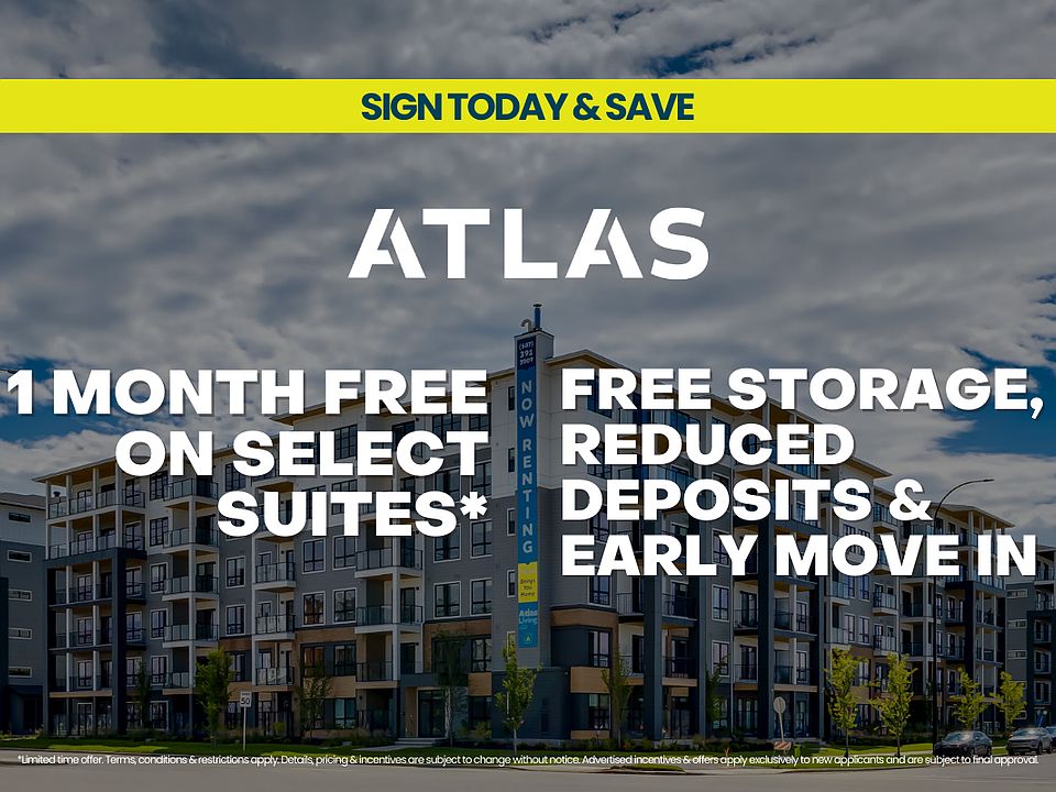 Suite C - 3 Bed/2 Bath Atlas Premium Rental Living in Northwest CalgaryExperience rental living like never before at Atlas in Northwest Calgary. Thoughtfully designed 1, 2, and 3 bedroom suites surround a central amenity hub, offering unmatched comfort, connection, and convenience. With sleek, pet-friendly apartments and an exceptional lineup of amenities, Atlas sets a new standard for modern living. Demand is high and suites are going fast - don't wait to secure your new home in this vibrant, growing community.Suites Feature:In-suite washer & dryerEnergy-efficient stainless-steel appliancesQuartz countertops & high-end finishes9 ft. ceilings & full-height soft-close cabinetryEasy-to-maintain plank flooring (Moduleo vinyl)Complimentary in-suite high-speed internetPrivate patio or balconyIndividually controlled heat & A/CRoller shade window coveringsBathroom tile surroundsAmple storage spaceOpen-concept layouts with expansive viewsBuilding & Community Amenities:Heated underground parkingTwo elevators per buildingOn-site management & leasing teamParcel & storage lockersCo-working spaces & amenity-wide Wi-FiLounge & chef's kitchenMedia/games room & outdoor patioGuest suitesFitness centreBike storage & repairPet spa & outdoor relief areaKids' play areaSteps from Carrington Station RetailAtlas blends modern living with community connection. Move in today and start living the Atlas lifestyle.*Details, pricing, and availability are subject to change without notice. Pricing shown reflects starting rates only. Advertised incentives and offers apply exclusively to new applicants and are subject to availability and additional conditions. All fees, deposits, incentives, and charges are subject to final approval. Terms, conditions, and restrictions apply. Please contact our leasing team for the most current information. Incentives: 1 Year Free Internet 1 Month Free Rent on Select Suites 1 Year Free Storage Endless possibilities 3 Bed with open concept layout, lots of natural light & spacious balcony! Underground Parking: $90/month*Storage: $35/month*Pet Fee: $25/month, deposit may be applicable*