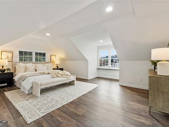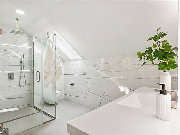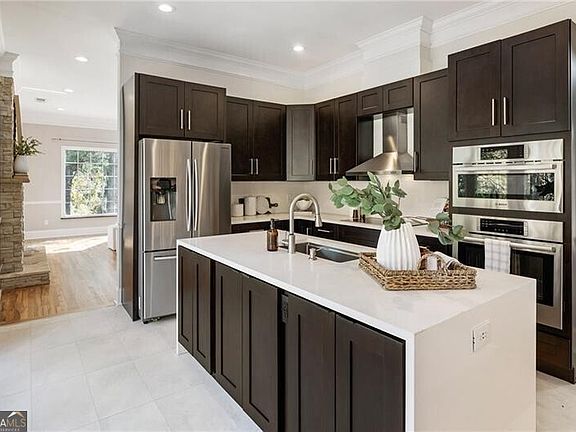 Welcome to this beautifully crafted modern cottage, where natural light and thoughtful design come together to create an inviting, livable elegance. The main level showcases a bright open-concept floor plan anchored by a stunning kitchen with quartz waterfall countertops, stainless steel appliances, a large island, and generous storage, including a walk-in pantry. The kitchen flows seamlessly into the spacious living room, where a wood-burning stone fireplace and expansive windows frame serene views of the surrounding landscape. Also on the main level are two bedrooms, a fully renovated bath with a zero-entry shower, a powder room, a sunny breakfast nook, and a conveniently located laundry room. Upstairs, the expansive primary suite offers a tranquil retreat with a private balcony overlooking the beautifully landscaped backyard and peaceful creek. The finished terrace level adds remarkable flexibility with a bedroom, full bath, and three versatile spaces ideal for a recreation room, secondary kitchen, home gym, or additional living area. From here, access the two-car garage featuring a pristine epoxy floor. Additional highlights include a freshly painted exterior, refinished hardwood flooring on the main level, and a brand-new aluminum fence enclosing the spacious backyard. An outdoor kitchen, patio, and fruit trees complete the peaceful setting, while a fully functioning well provides irrigation for the lush landscape. Situated on a large, level lot with both a circular front drive and a separate garage driveway, this property offers convenience and charm in equal measure. Zoned for top-rated schools and just minutes from Downtown Alpharetta, Crabapple, and major thoroughfares, it perfectly balances privacy and accessibility.